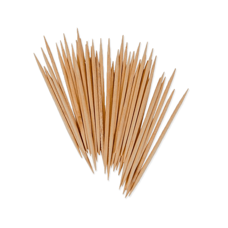 Cure-dents en bambou de haute qualité, dotés de deux pointes pour une efficacité optimale. Conditionnés en sachets de 1000 pour garantir hygiène et praticité, et disponibles en carton de 30 000 unités.